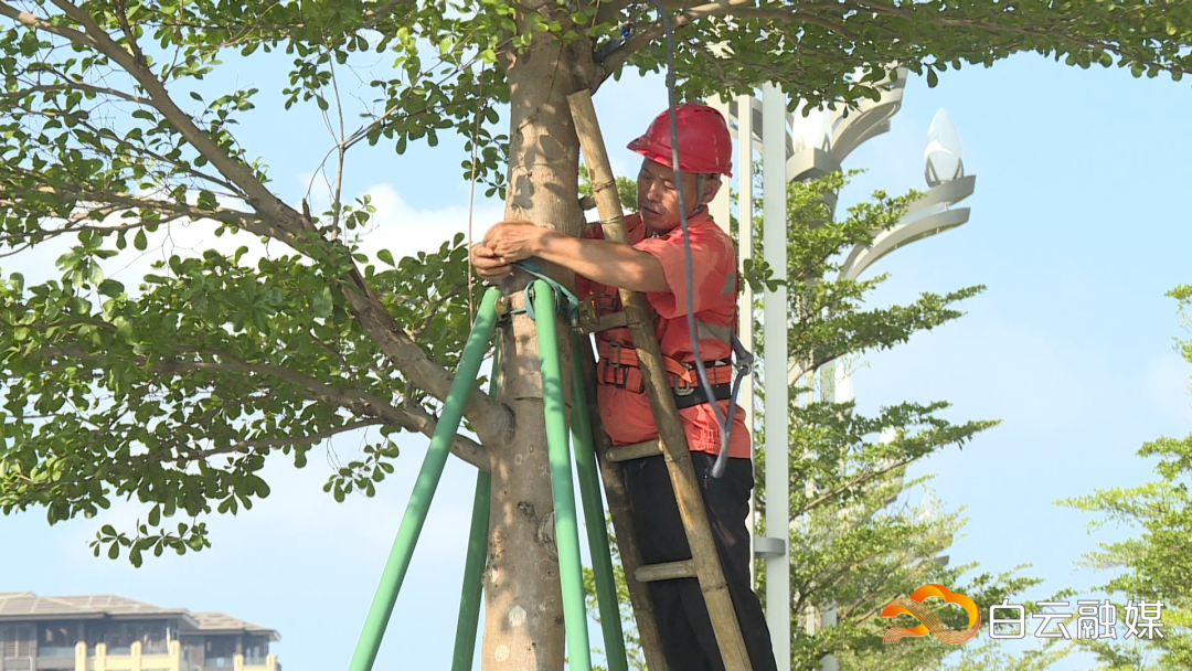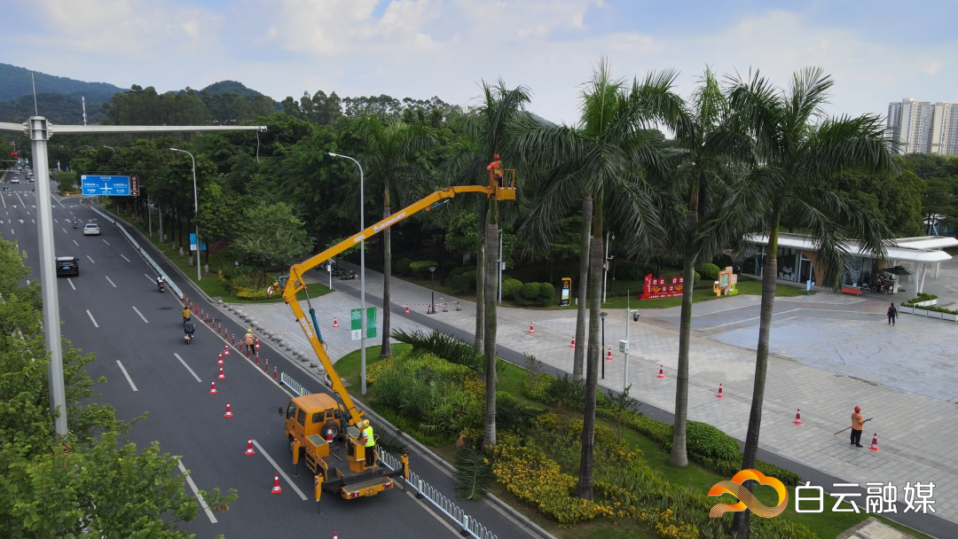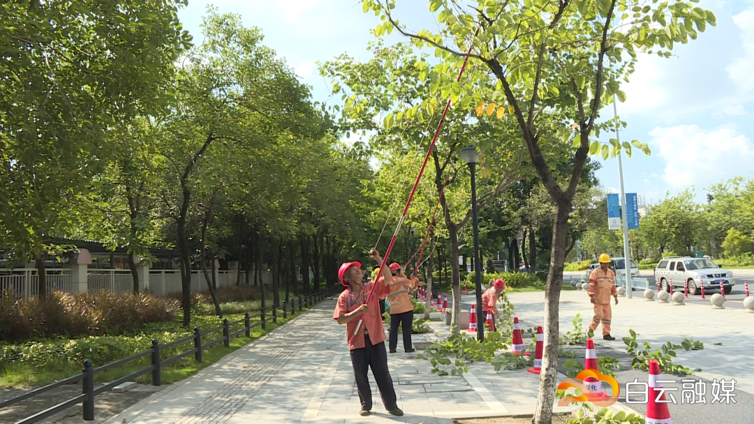 9月22日,记者在云城街云城中一路看到华生证券,绿化工人、环卫工人和作业车辆正在忙碌作业。环卫工人加紧清扫道路,绿化工人正逐棵检查树木,对发现的倾斜树木立即进行加固。白云区城管局相关负责人告诉记者,新种植树木因根系尚浅,抗风能力弱,是重点加固对象。同时,重点对树冠过大树木的枯枝、病弱枝和过密枝进行修剪,减少树体的受风面积,提高树木抗风能力。